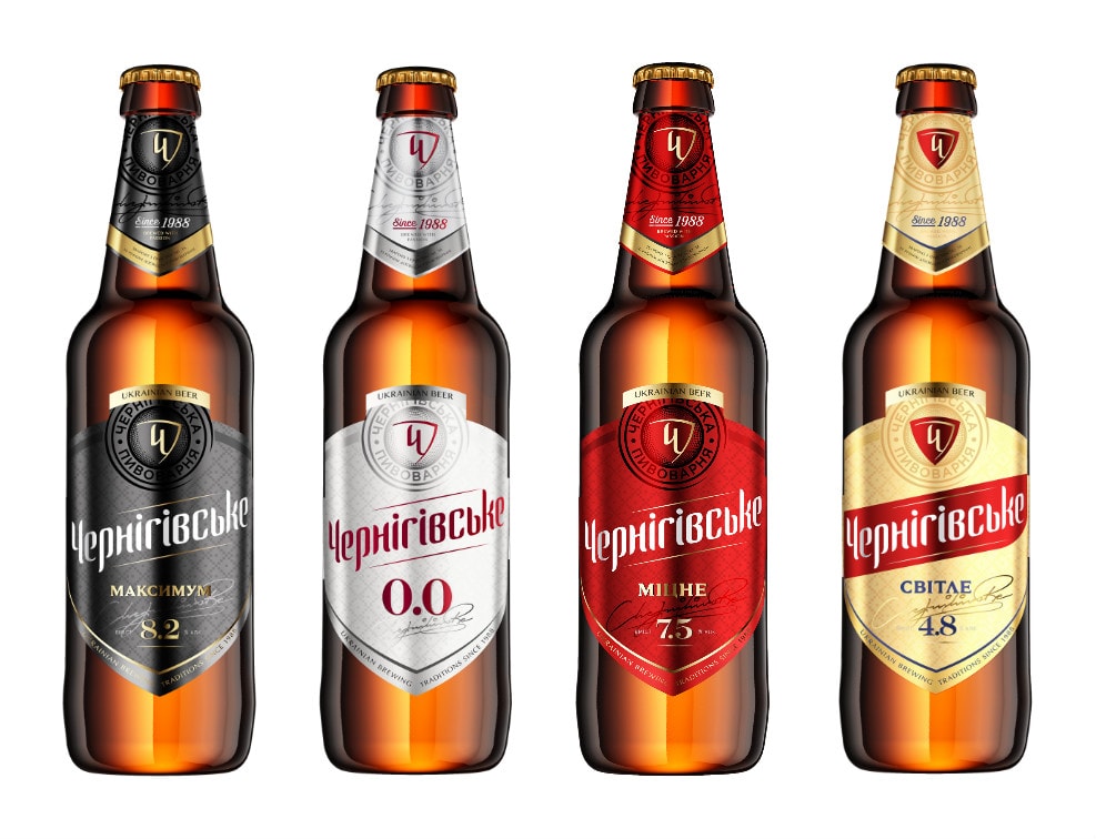 Основна лінійка «Чернігівське» представлена в нових кольорах кольоровій гамі відповідно до чотирьох сортів пива: «Світле» (золота етикетка), «Безалкогольне» (срібна), «Міцне» (червона), «Максимум» (чорна).