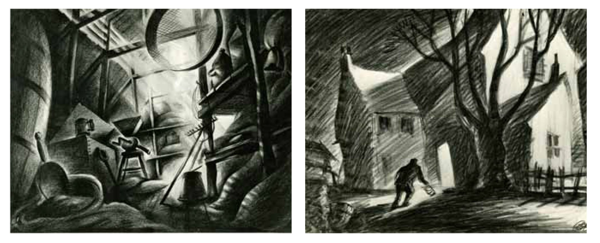 У цих ескізах до анімаційного фільму «Колгосп тварин» (1954) не лише візуалізовано сцени, але й створено атмосферу, що передає загальний настрій оповіді.