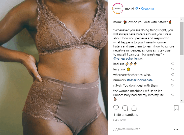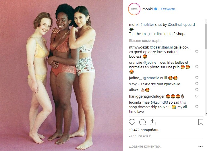 Це відбулося через кілька місяців після того, як Monki, що входить до H&M Group, отримала схвальні відгуки за показ природних жінок.