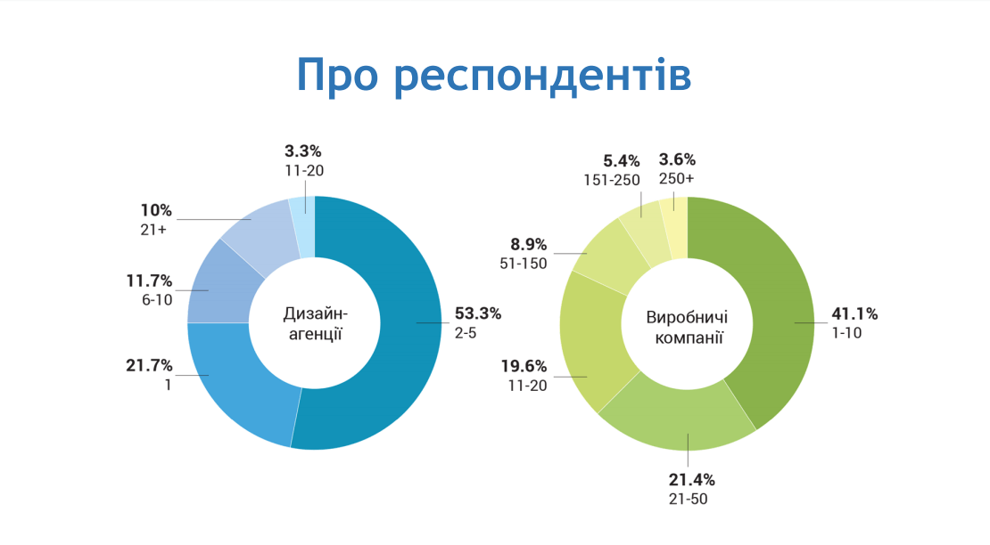 Більшість дизайн-агенцій, незалежно від року заснування, мають невелику кількість працівників. Очевидно, на цьому етапі розвитку ринку компанії не вважають за потрібне масштабуватися та збільшувати штат.