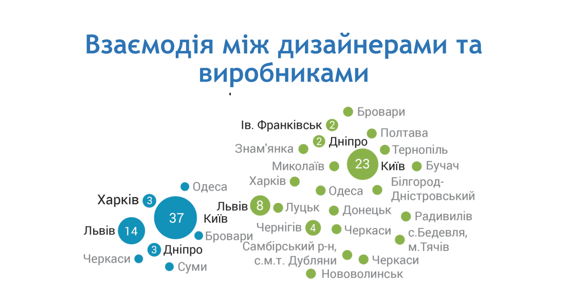 Дослідження демонструє процес децентралізації в сфері дизайну. Однак найактивнішими все ж залишаються великі міста. Це пов’язано з розвитком виробничої бази, обігом фінансів, доступом до інформації та профільних освітніх програм. А також із пожвавленням підприємництва та стрімким ростом забудови, що безпосередньо впливає на розвиток інтер’єрного сегменту та меблевої промисловості.