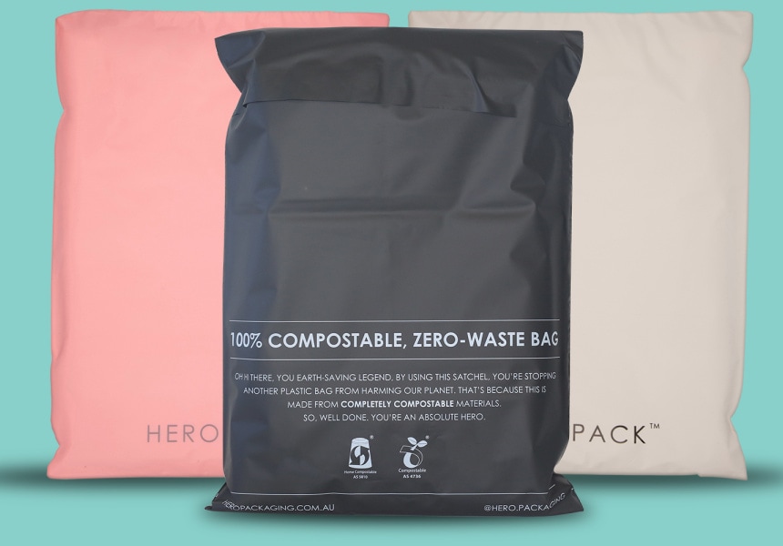 Hero Pack — універсальні пакети для посилок, які повністю розкладаються. А дизайн пакування — стриманий мінімалізм у трьох кольорах (білий, чорний, рожевий).