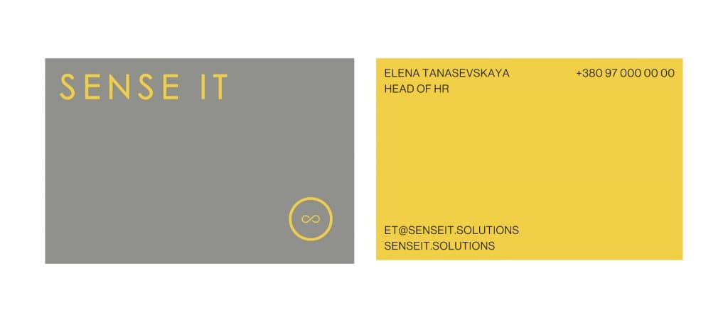 Утім, саме цей останній штрих підказав нам краще рішення. Ми змінили шрифт. У лого перейшли на малі літери та додали крапку. Завдяки цьому нашу назву перестали читати як sense IT (ай ті) — тепер це точно sense it. У крапку ми сховали додаткові візуальні прийоми.