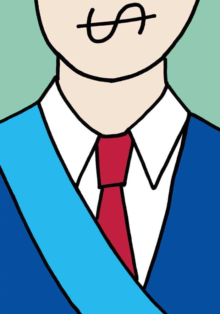 Фабіан Каррерас (Fabian Carreras) з Аргентини у мінімалістичне графічне рішення вкладає суть корупції, той самий невинний конверт – зловісний символ клептократії. І в його ж іншому плакаті без назви невеличка деталь – знак долара, який зв’язує рота чиновнику високого рангу.