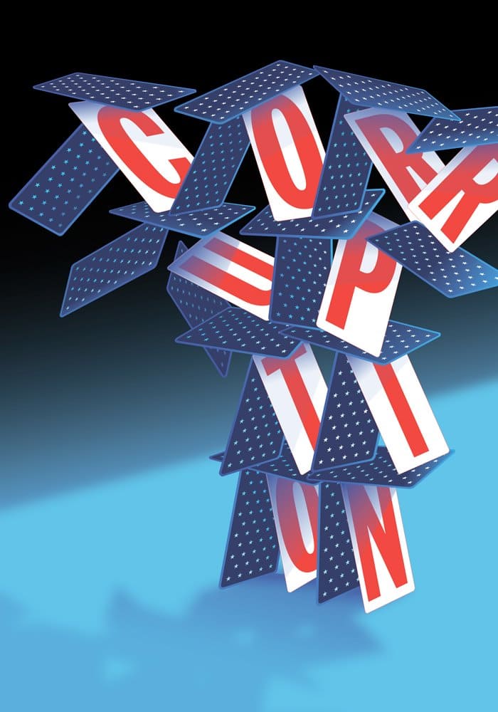 Урешті-решт хитка корупційна конструкція розсипається, ніби картковий будиночок на плакаті Чедоміра Костовича (Cedomir Kostovic) із США. А хто з такою тезою не погоджується, того чекає «відпочинок», красномовно і наглядно представлений відомим українським дизайнером Володимиром Лесняком у плакаті «Накрався – відпочинь».