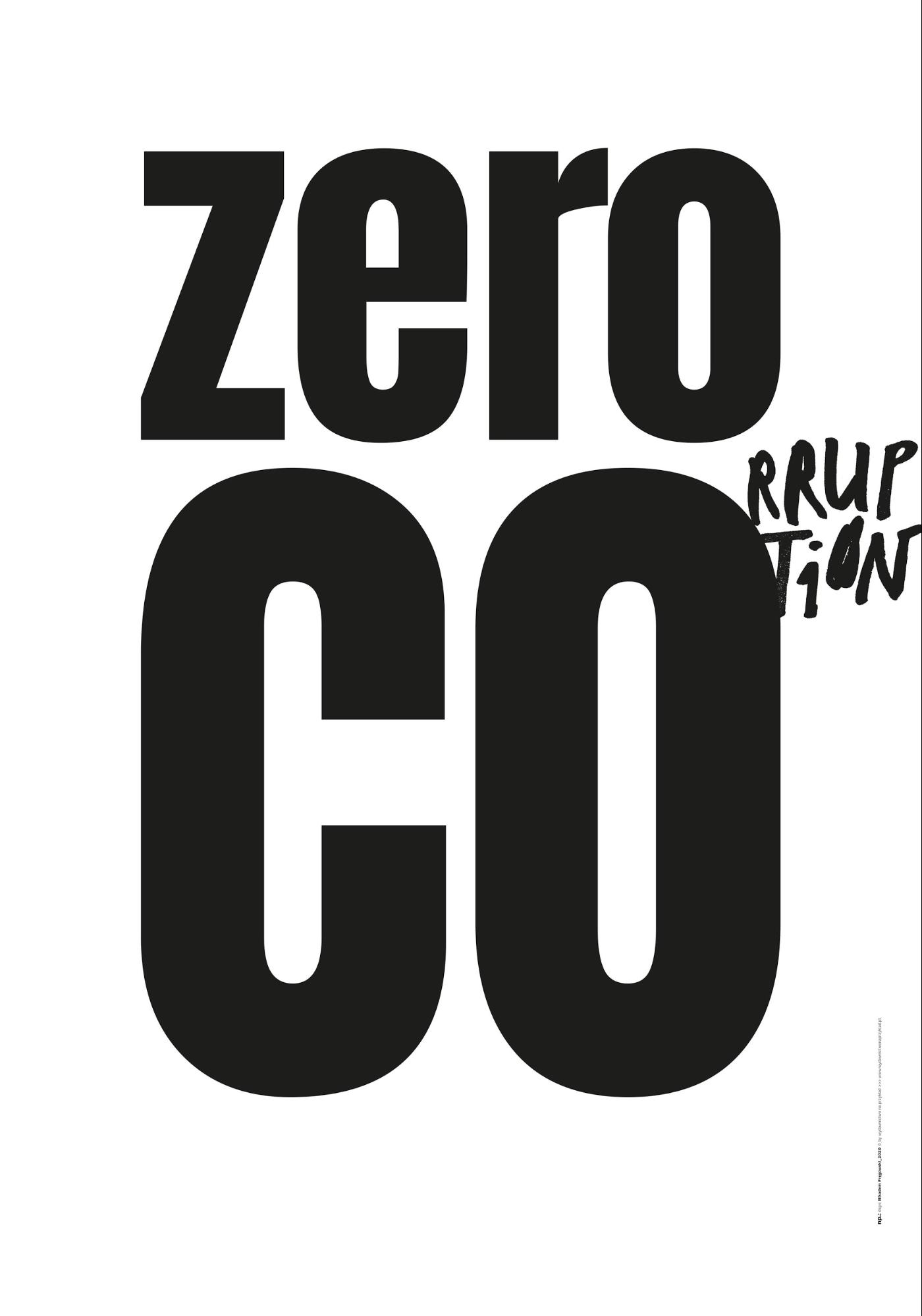 Майже про те саме, але абсолютно по-іншому трактує тему Нікодем Преговські (Nikodem Pręgowski) з Польщі у своєму шрифтовому плакаті. Легка гра з буквами наповнює новими смислами відоме і недвозначне словосполучення. Нуль корупції – нуль CO₂.