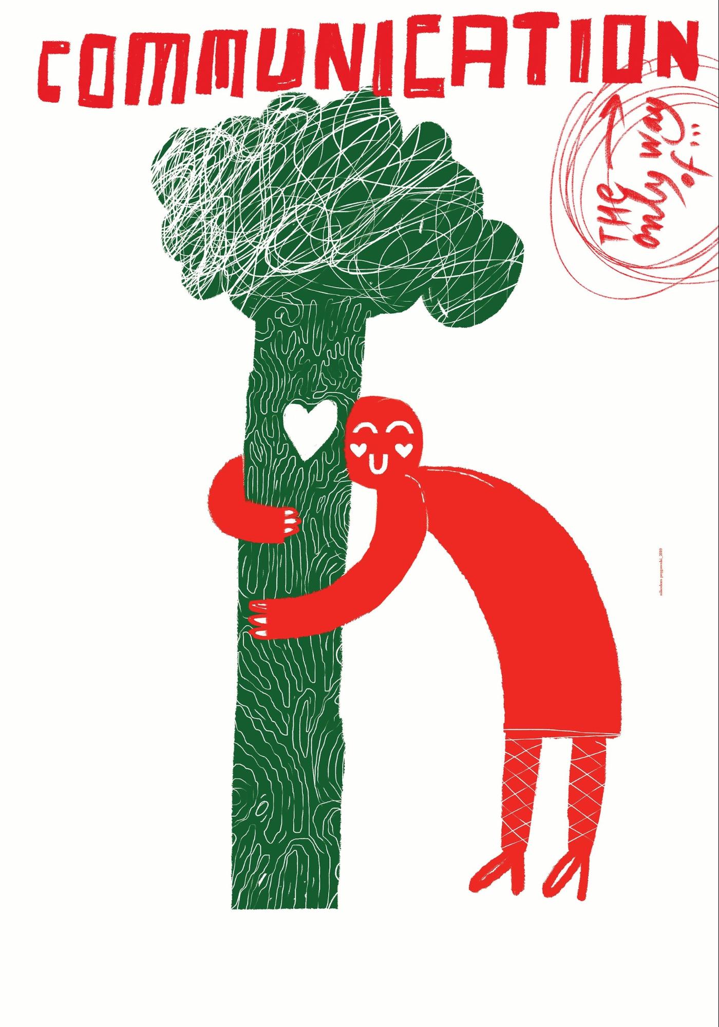 Зовсім інший шлях єдності з природою пропонує той же Нікодем Преговські (Nikodem Pręgowski). І це не просто декларація – любіть дерева. Я бачу в плакаті чіткий посил розглядати природу загалом не як об’єкт, який можна використовувати у своє задоволення, а рівноправний суб’єкт комунікації, наділений однаковими правами з людиною.