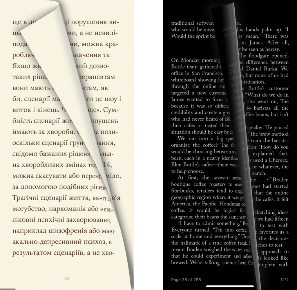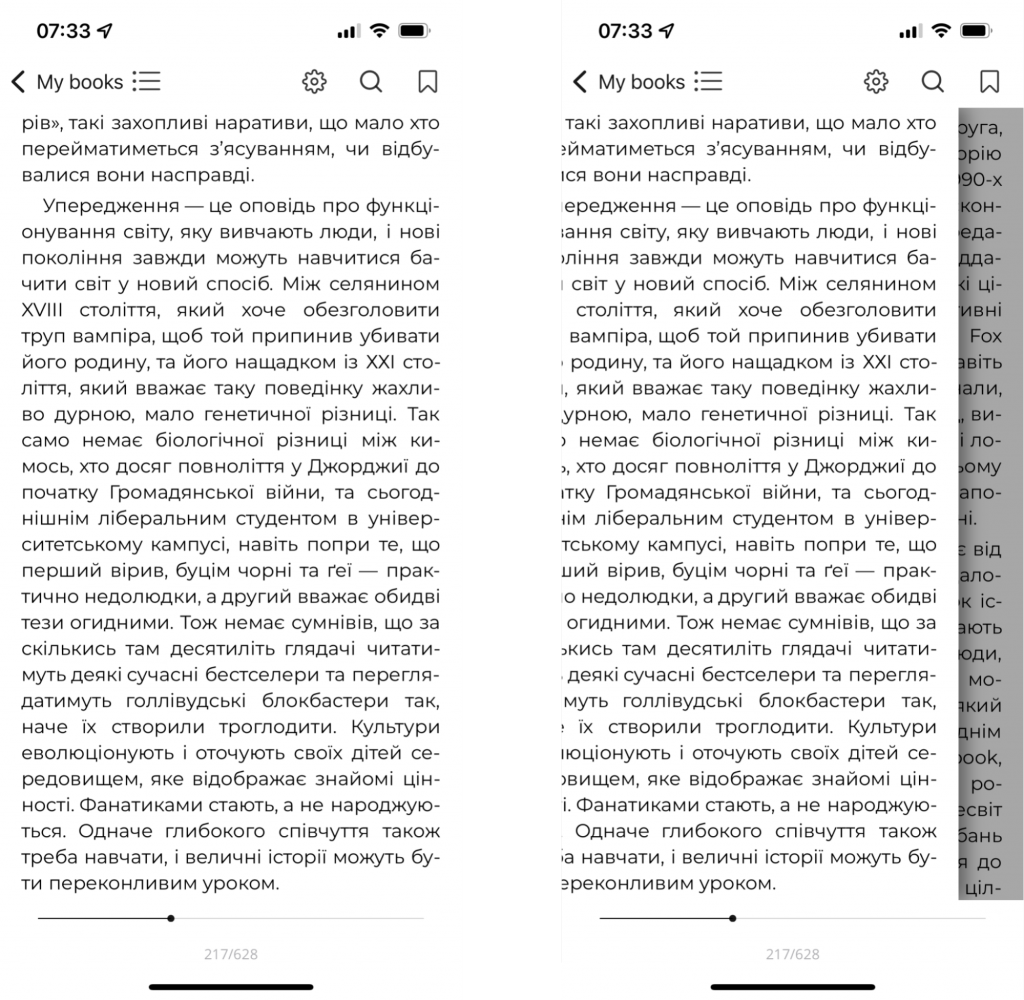 Книги. На екран вміщається максимум 16 книг або чотири категорії. Підозрюю, що розробники свідомо сфокусувались на можливості показати якомога більше контенту, щоб полегшити життя користувачеві. Чи правильним було саме це рішення? – Не думаю. В інтерфейсах завжди доводиться чимось жертвувати. У цьому випадку постраждала інформативність.