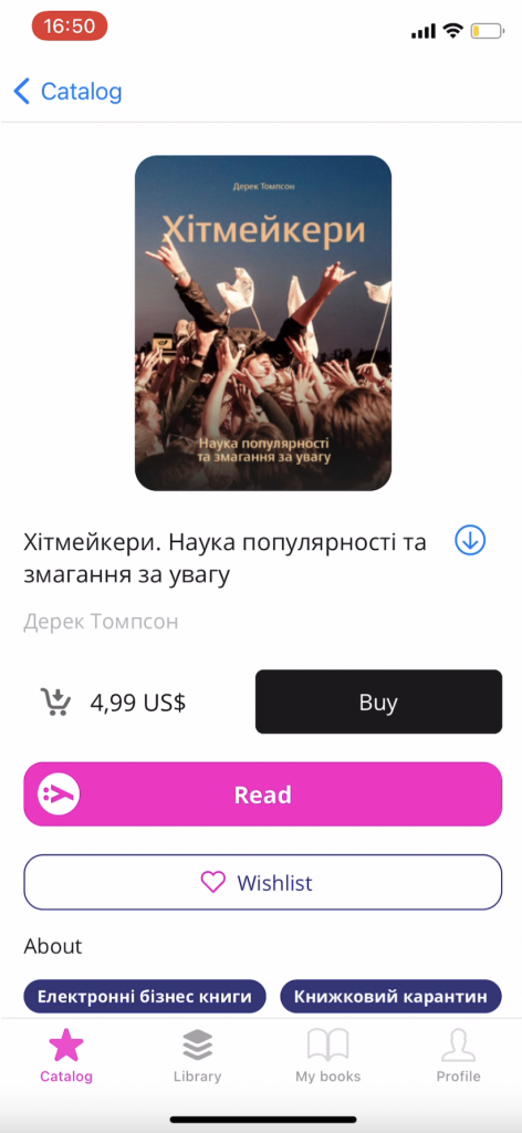 Ідея крута: компанії-партнери отримують цікаве доповнення до пакета плюшок, користувачі отримують безкоштовні книги, а Yakaboo — аудиторію, яка з більшою ймовірністю залишиться в додатку і, крім безкоштовного, купить собі щось ще.