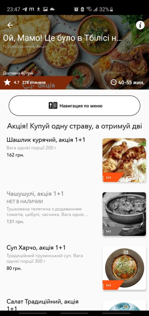 По-друге, немає фільтрації або принаймні сортування. Заклади розміщені в незрозумілій (мені) послідовності. Хоча є декілька варіантів, як можна було би зібрати заклади: за назвою, швидкістю доставки, вартістю, рейтингом або відстанню. Потрібно просто безкінечно гортати стрічку.