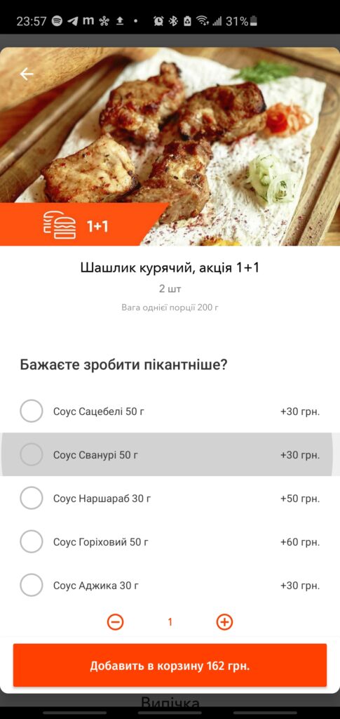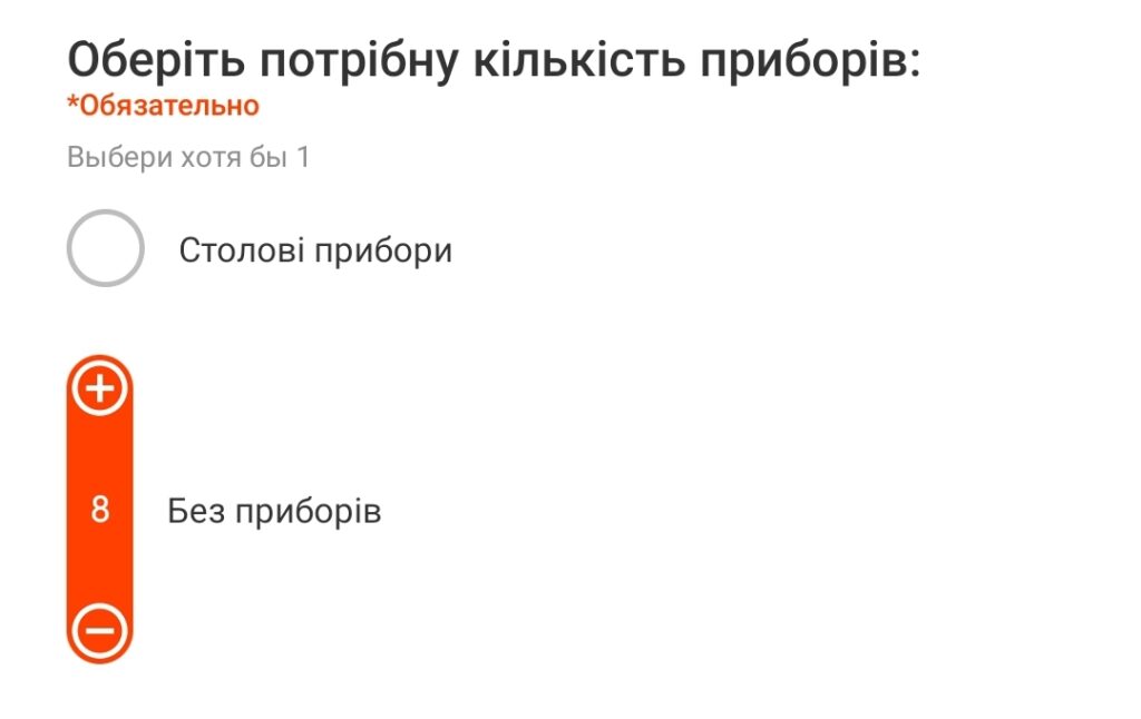 А от щоби додати соус, потрібно натиснути точно на радіобатон, а не на його назву. І це не радіобатони (ті, що дозволяюьб обирати один варіант), а чекбокси (вони зазвичай квадратні та дозволяють обрати один або декілька варіантів).