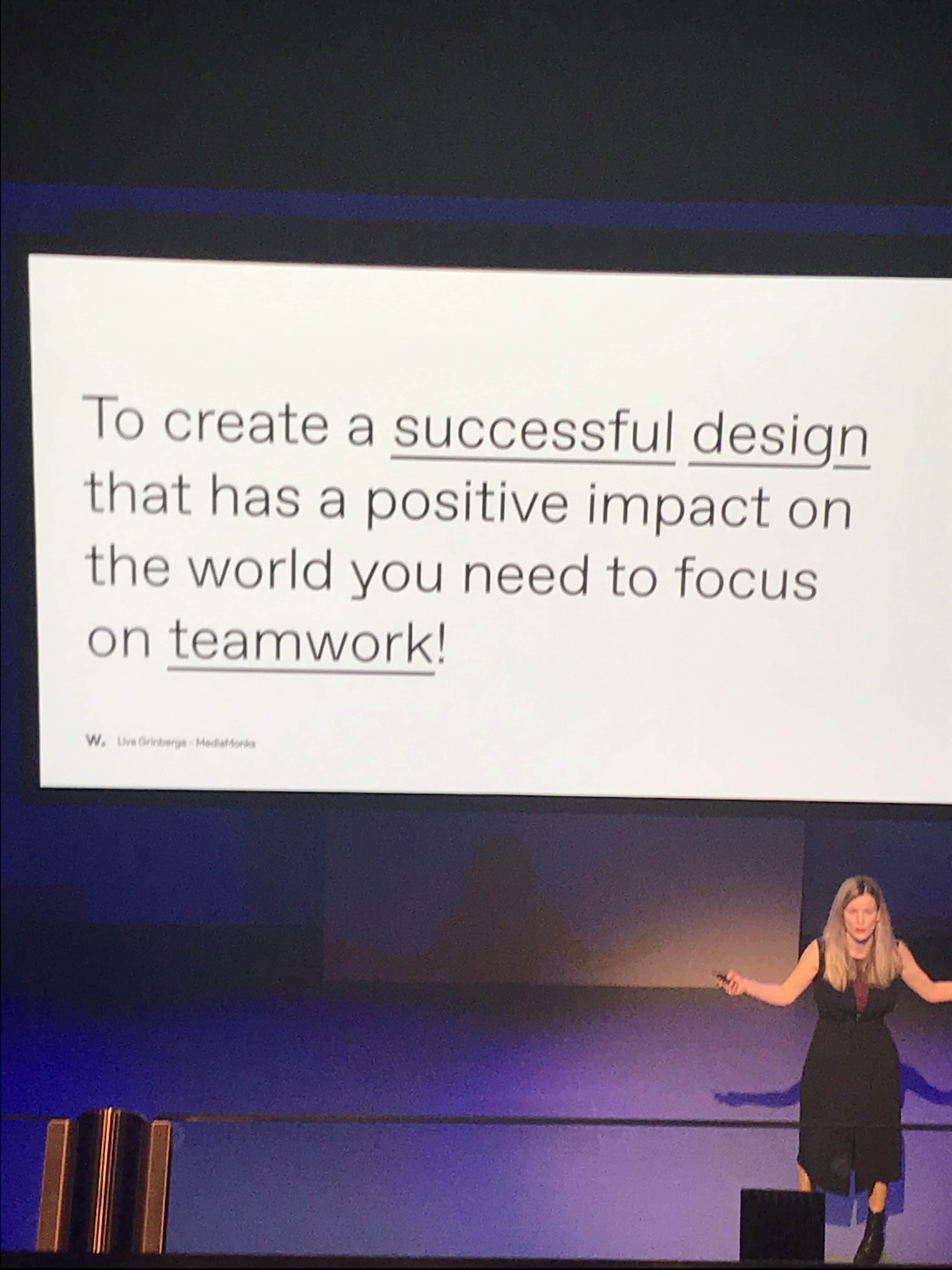 Напевно, не було жодної доповіді, в якій не згадувалося б про командну роботу або мотивацію. Це зараз вже починає бути схожим на свого роду культ. Усі як один говорили щось подібне: «Аби створити успішний дизайн, що позитивно вплине на світ, потрібно зосередитися на командній роботі. Необхідно створити середовище, в якому може відбуватися творчість».