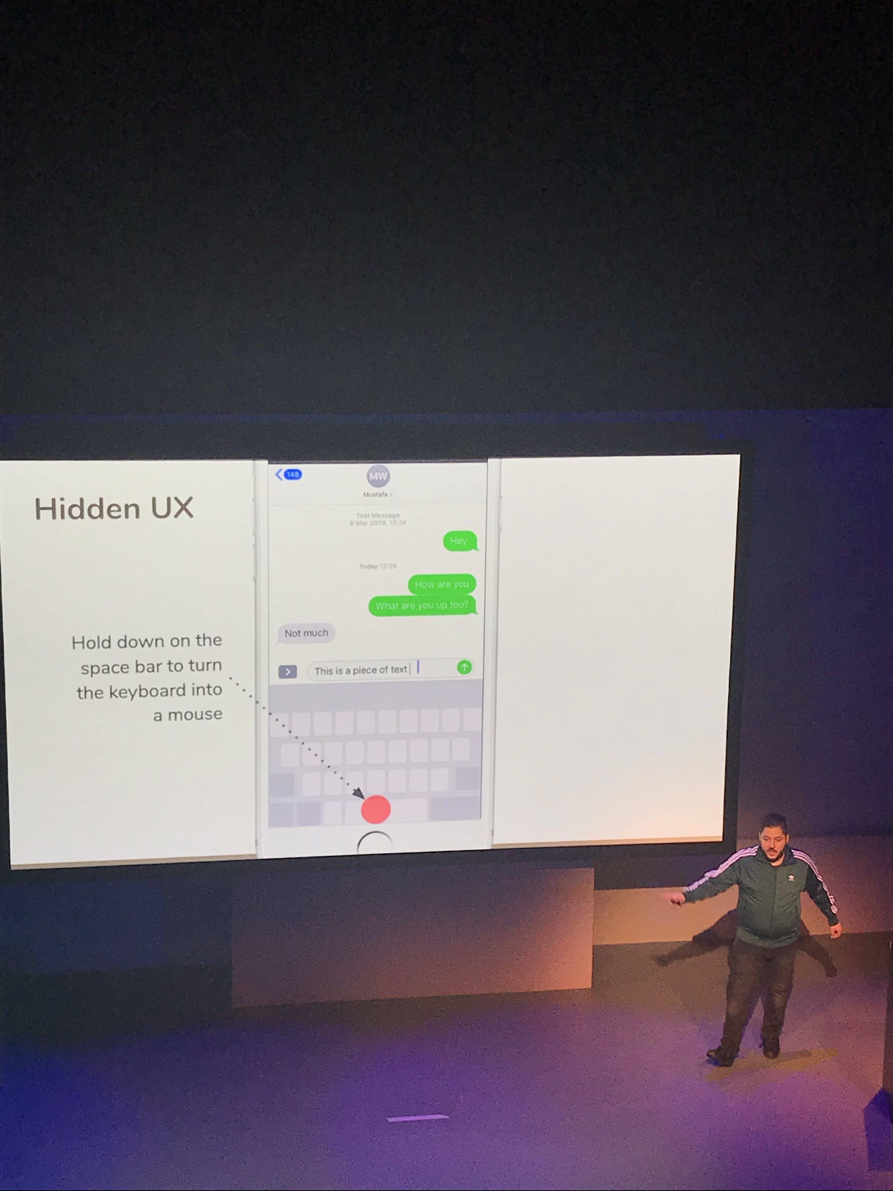 Якщо на iPhone затиснути пробіл на клавіатурі, то курсор видозмінюється, і його з легкістю можна переносити в будь-яку частину тексту.