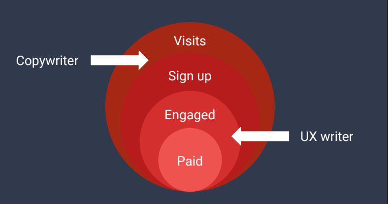 Копірайтер описує функціонал продукту так, щоб програму хотілось завантажити й люди почали з нею взаємодіяти. Завдання UX-райтера — зробити так, щоб користувачі досягли своїх цілей, захотіли платити за продукт і порадити його знайомим.