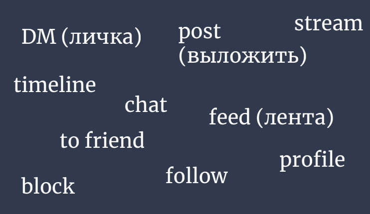 Але ж ми хочемо створювати ще щось нове! Соцмережі на кшталт фейсбуку і ютубу сформували значну частину нашого лексикону: стрімити, постити, фід, таймлайн. Безліч слів, які прижились і використовуються саме в контексті соцмереж. Чому? Як їм це вдалось? У мене є припущення.
