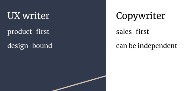 Саме тому копірайтери працюють у відділі маркетингу, а UX-райтери мають працювати з продакт-командою.