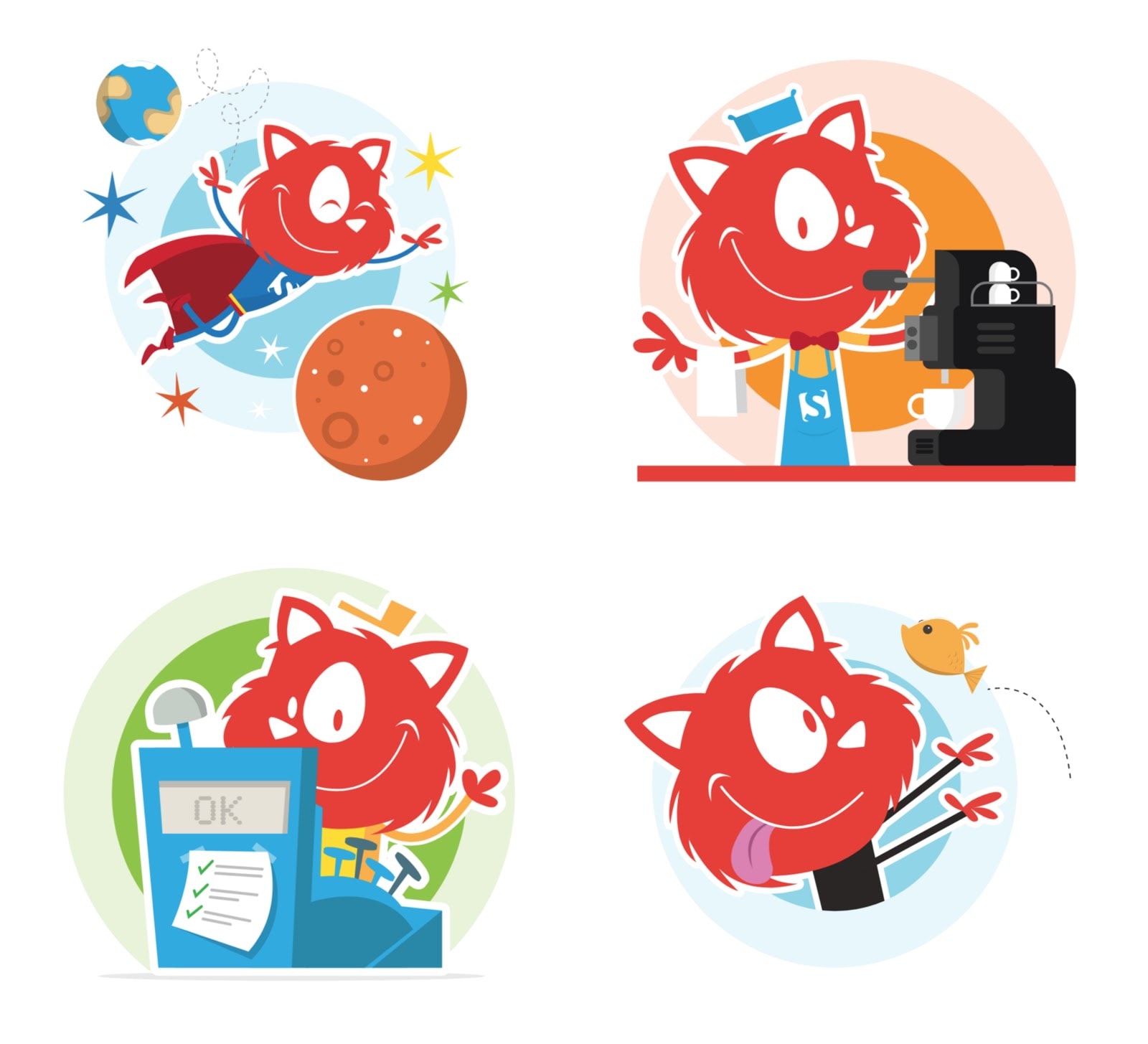В один момент передо мной возник вопрос: куда дальше двигаться? В направлении серьезности или нет? Когда мы работаем над UI-продуктом, то либо делаем абсолютно правильно, либо абсолютно неправильно. Может так получиться, что кнопка окажется на 5 пикселей дальше, чем должна быть. Нет. Она должна быть или точно на месте, или там, где никто ее не ожидает увидеть. Так и с котами: мы решили, что либо ни одного, либо завалим ими все.