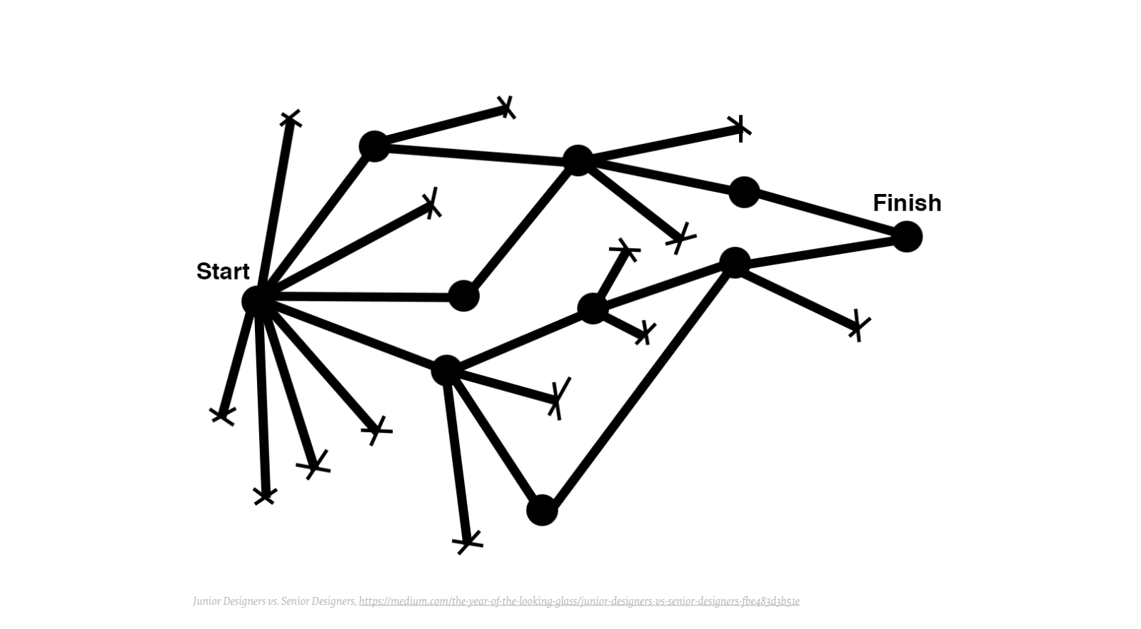 На самом деле креативный процесс выглядит как разветвленное дерево из веток и тупиков.