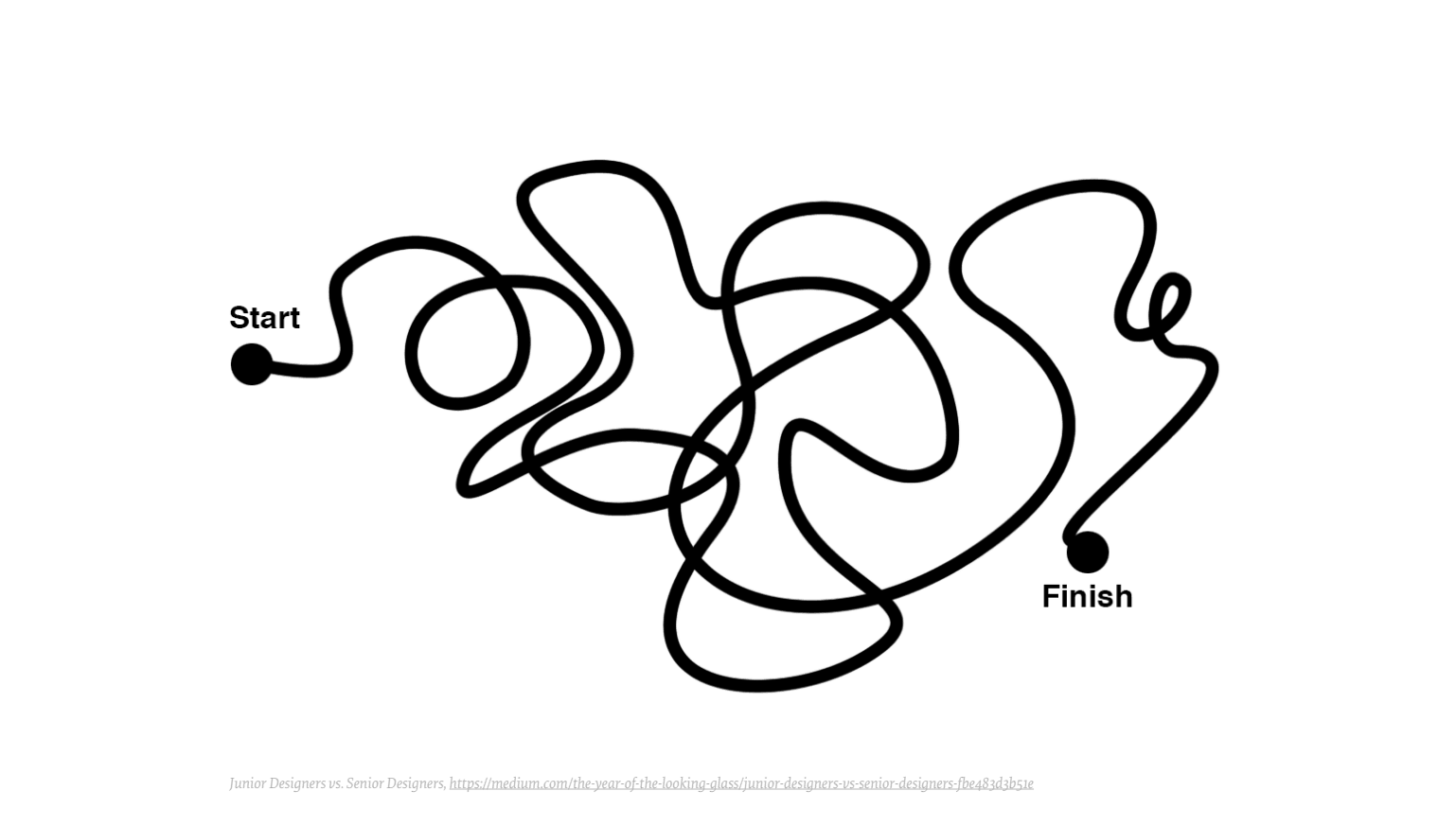 Все интерфейсы выглядят очень похоже. Все кнопки слишком гладкие и чистые. Мне кажется, мы забыли, что можно применить нашу человечность в интерфейсах. Поэтому для меня в процессе было важно понять, каким Smashing должен быть в плане personality. В компаниях, с которыми я работаю, думают, что креативный процесс выглядит вот так: сплошная запутанная линия.