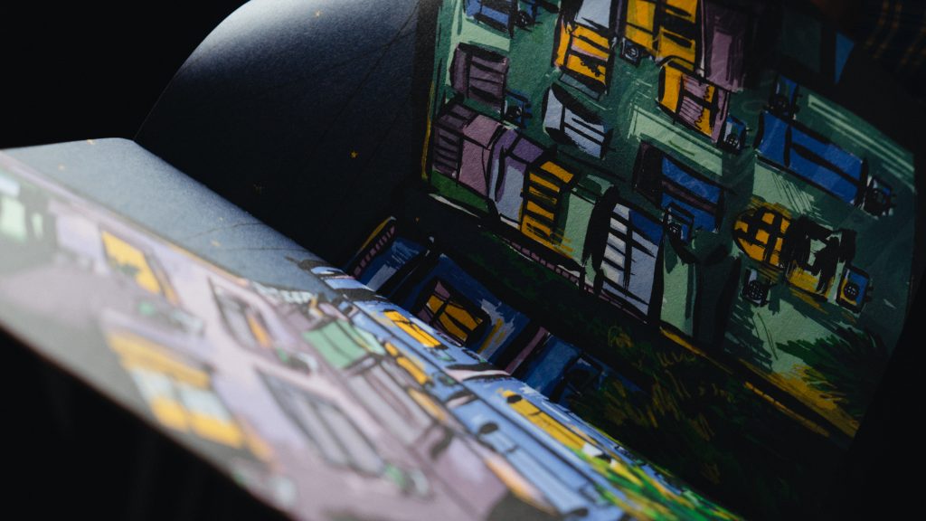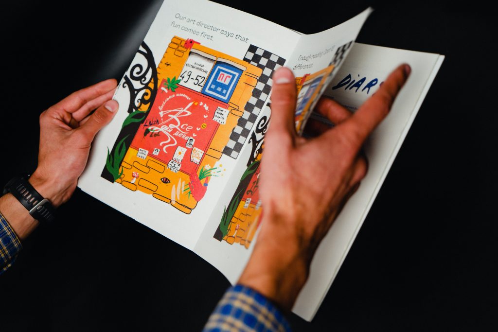 Вся робота із друком лягла на авторку проєкту, адже вона була частиною візуальних креативників команди. У Берліні дівчина вже мала справу з місцевими друкарнями, але каже, що київський досвід був куди приємнішим.