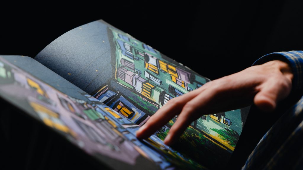 «Я не могла анімувати перегортання сторінки на принті, але чому б не змусити читача повернути голову? Так читач через друкований продукт може прожити контакт з містом».