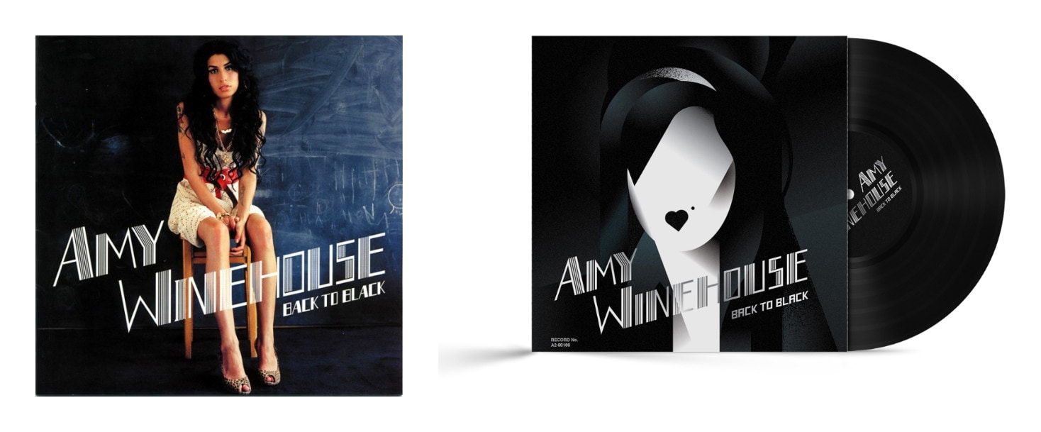 Обложка альбома Эйми Вайнхауз Back to Black. Оригинал (слева) и интерпретация (справа).