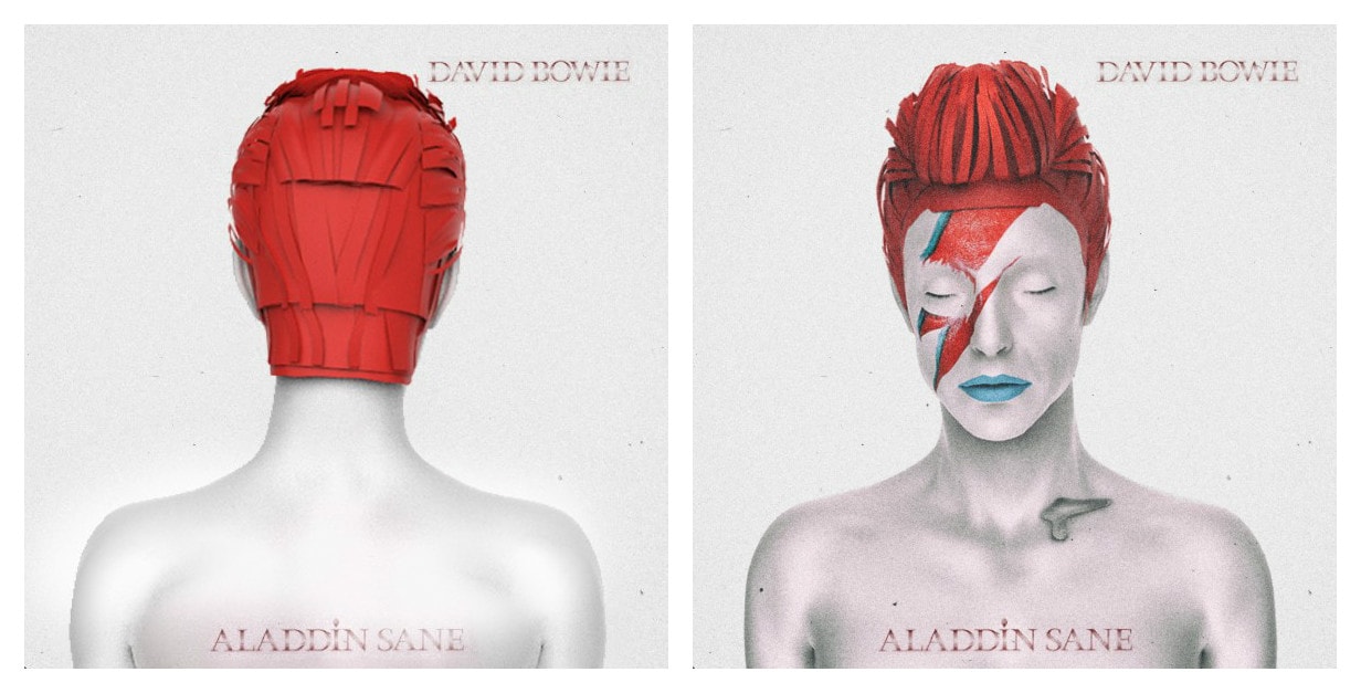 Обложка альбома Дэвида Боуи Aladdin Sane. Оригинал (слева) и интерпретация (справа).