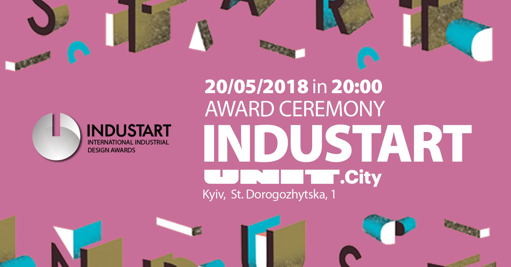 AWARD Ceremony INDUSTART 2018 — це фінал міжнародного конкурсу INDUSTART, який охоплює сферу сучасного мистецтва, дизайну, бізнесу та сучасних технологій. В цьому році роботи представлені з 56 країн в 7 номінаціях і 21 суб-номінаціях. Переможці визначені, вони будуть озвучені та нагороджені на гала вечері 20 травня.