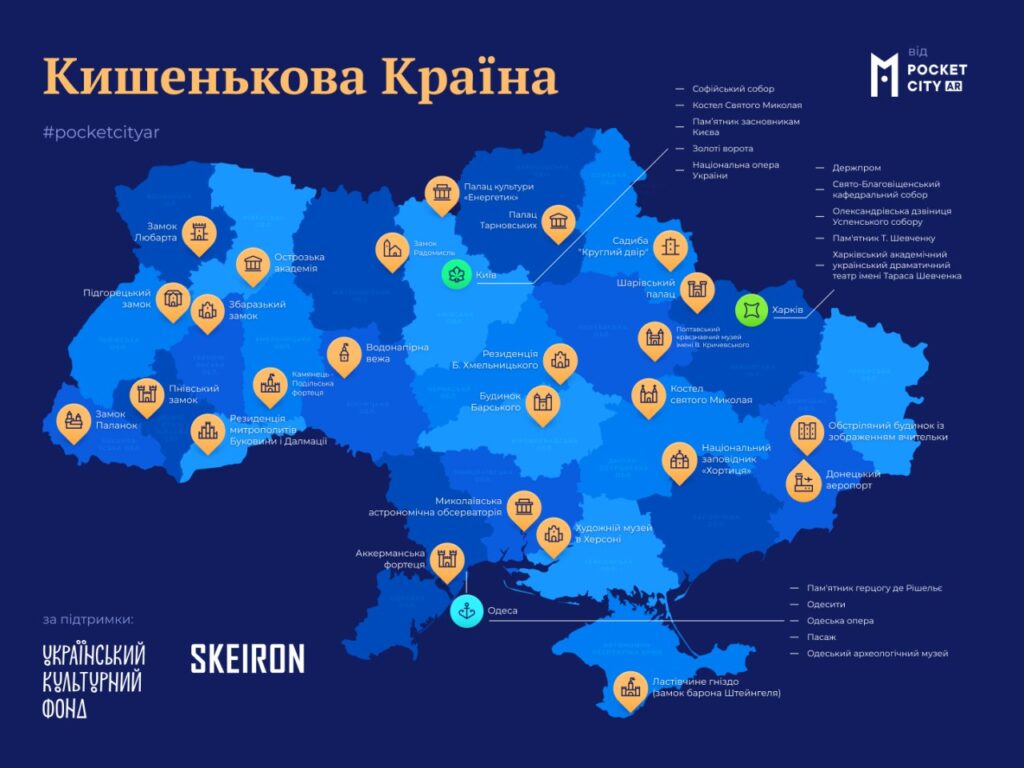 Під час експедиції команда SKEIRON охопила усі 24 регіони та АР Крим. Всі оцифровані об’єкти будуть доступні у форматі AR-листівок, які можна сканувати додатком Pocket City AR з аудіогідом українською та англійською мовами.