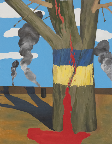 До експозиції виставки увійшли роботи, створені саме під час проєкту або напередодні, у часи вторгнення й активних бойових дій: живопис, графіка (зокрема, серія плакатів воєнного часу), інсталяції, скульптура, фото та відеодокументація подій в Ірпені, Бучі, Гостомелі, Ворзелі, Бородянці, Києві, Харкові, Лисичанську та в інших українських містах, частково або повністю зтертих з лиця землі.