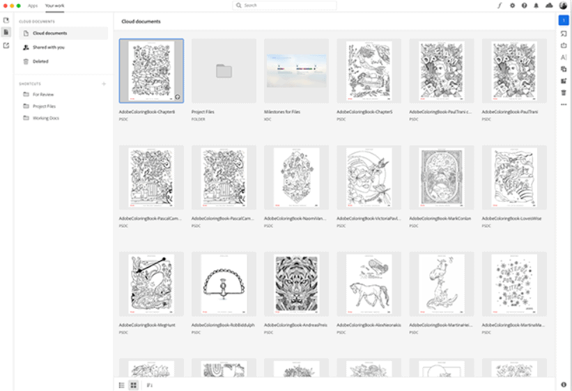 Додаток Creative Cloud спрощує пошук й управління шрифтами, навігацію хмарними документами і доступ до ресурсів, якими користувачі діляться через бібліотеки Creative Cloud.