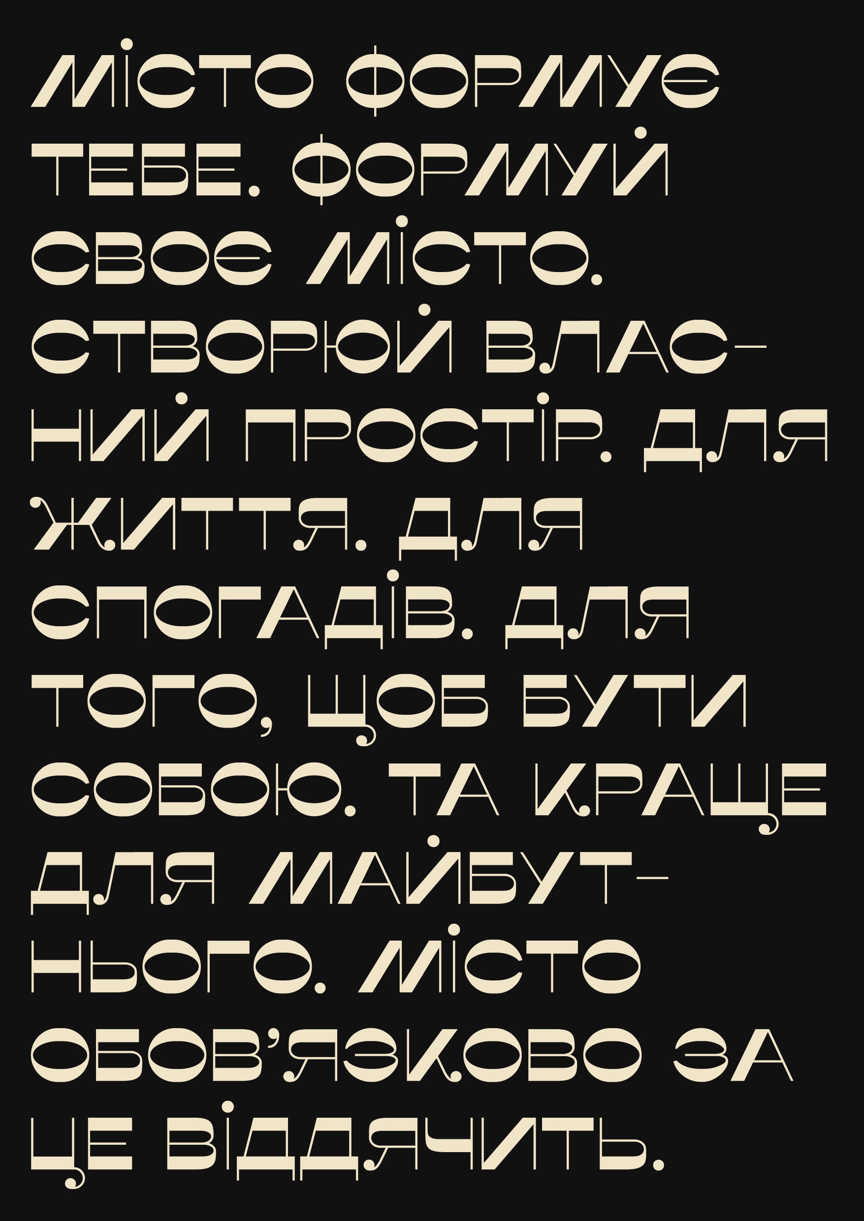 Також дизайнерка додала, що розробила шрифт, щоб відобразити молодий характер її рідного міста, де середній вік на сьогоднішній день є найнижчим серед усіх міст України: більше третини його мешканців молодше 18 років.