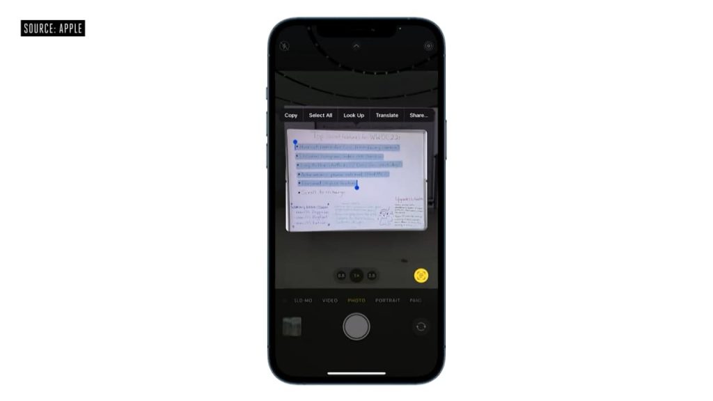 У додатку Камера – нова функція Live Text для розпізнавання тексту на фото, зокрема на скріншотах. Української наразі немає.