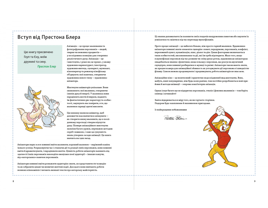 Першою книгою серії стане культовий посібник «Мальована анімація з Престоном Блером» від американського аніматора, який працював зі студіями Walt Disney Productions та Metro-Goldwyn-Mayer у 30-40-х роках минулого століття. Зокрема Блер відомий роботами над фільмами Діснея «Фантазія», «Піноккіо» та «Бембі» та мультсеріалом «Флінстоуни».