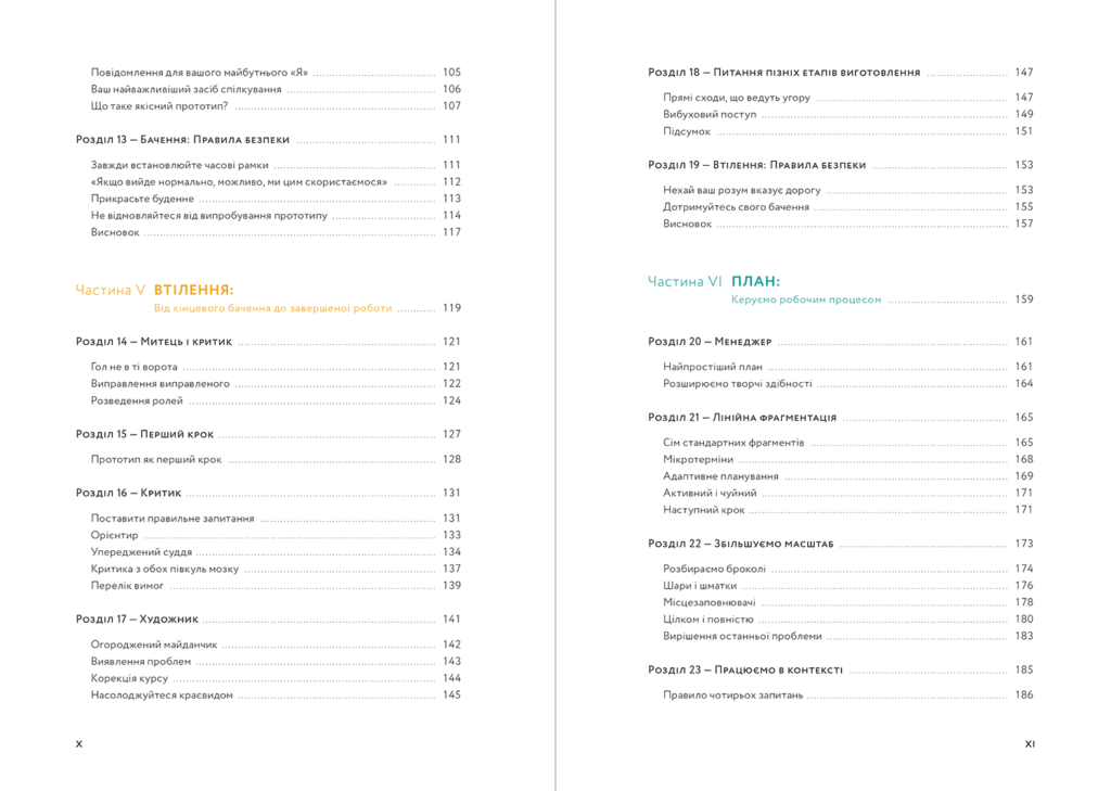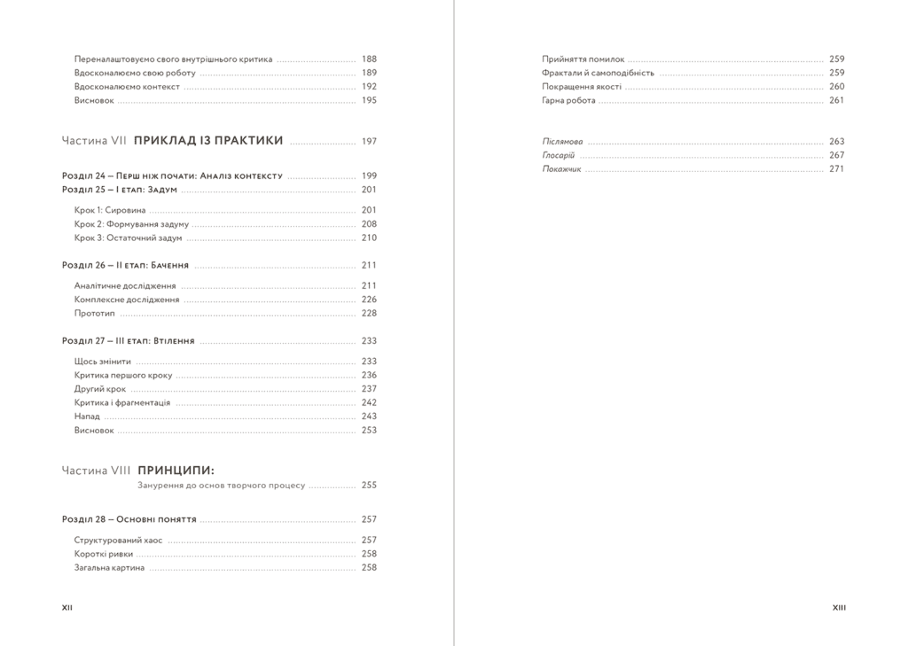 Книга складається з 28 розділів та розповідає про те, як правильно досліджувати, критикувати та налагоджувати робочий процес, як розвивати свої навички та занурюватися у творчість.