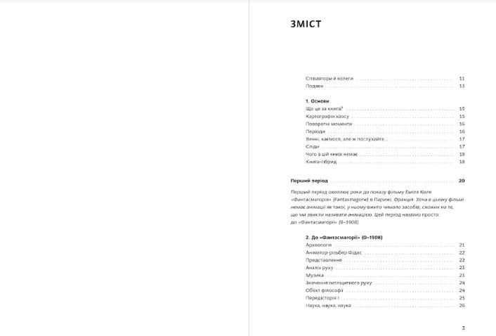 «Анімація стала свідченням і результатом того шляху розвитку мистецтва, технологій і суспільних відносин, який пройшло людство від найдавніших часів. Ця книга — це делікатна й захоплена оповідь насамперед про сотні натхненних творців, про їхні пошуки, досягнення й розчарування, про те, як часто вони кардинально змінювали світ довкола себе, самі того не усвідомлюючи», — пишуть у видавництві.