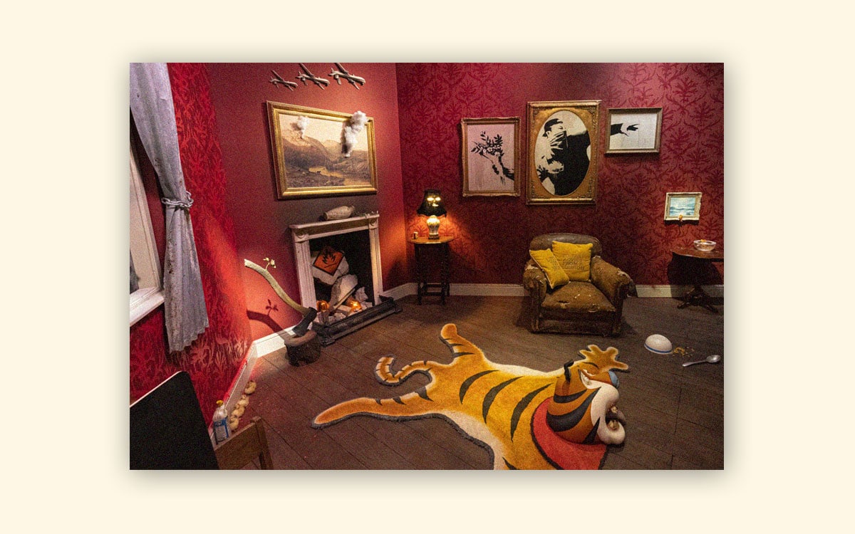 В інсталяції Бенксі зобразив капіталістичну антиутопію. Роботи художника ілюструють сучасні проблеми на кшталт експлуатації тварин, міграції та стеження з боку держави. В асортименті магазину є шкура талісмана бренду Frosted Flakes Тигра Тоні, а також дерев’яні фігурки — вони показують, як дітей віддають контрабандистам.