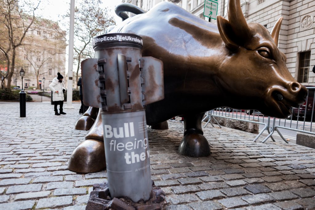 «Цією акцією ми переосмислюємо зміст популярної статуї та показуємо, що розлютований бик може виявитись всього лише наляканою твариною, яка тікає від війни. Під час повномасштабного вторгнення росія вбиває не тільки людей, але й мільйони тварин. Та нищить екосистему загалом. Для боротьби з цим злочином ми запустили міжнародну кампанію #StopEcocideUkraine», — пояснює засновник UAnimals Олександр Тодорчук.