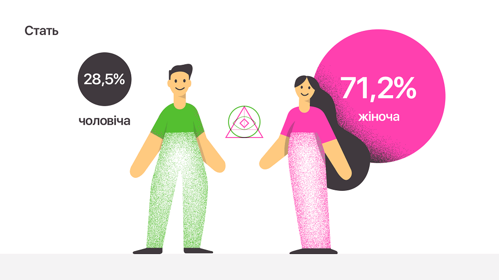В опитуванні взяли участь дизайнери віком від 21 до 35 років. Серед опитаних 71,2% жінок і 28,5% чоловіків.