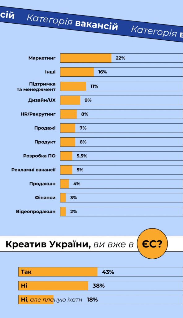 Від початку повномасштабної війни 24 лютого понад шість мільйонів українців, за даними ООН, виїхали за кордон. Зокрема представники креативної сфери: фотографи, художники, дизайнери, продюсери, SMM-менеджери тощо. Найбільше мігрували до Польщі. Найбільше вакансій для креативників пропонують у Німеччині.