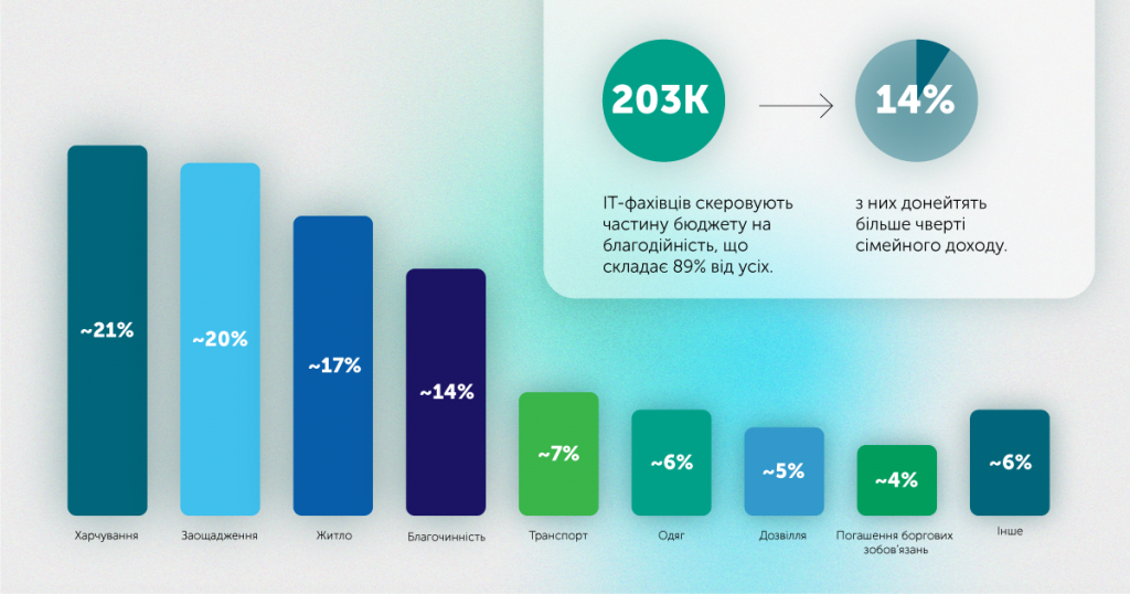 89% опитаних фахівців зазначили, що віддають частину доходу на благодійність.