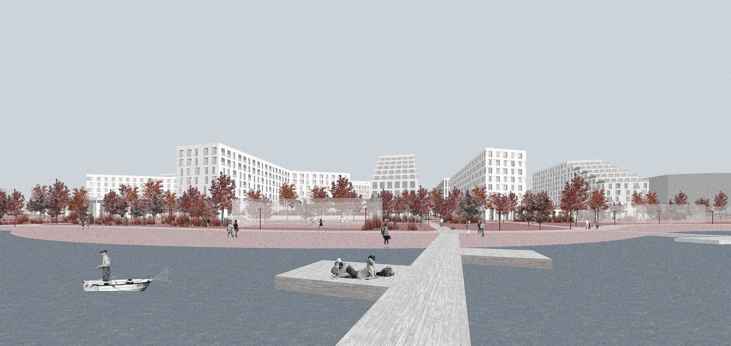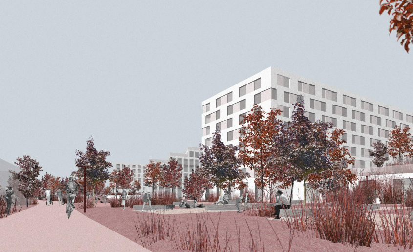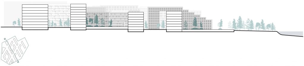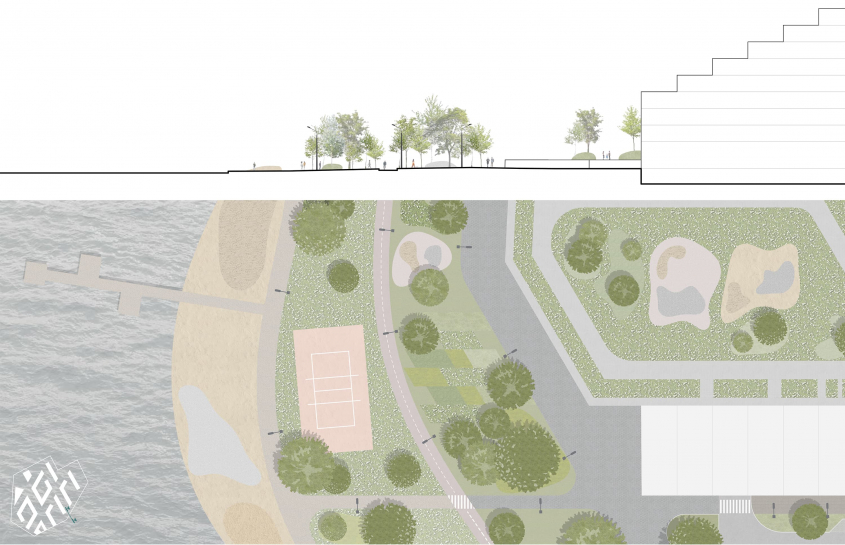– Пішохідний озеленений простір з громадською площею без машин та нову сформовану набережну для всього міста з максимальною доступністю до води.