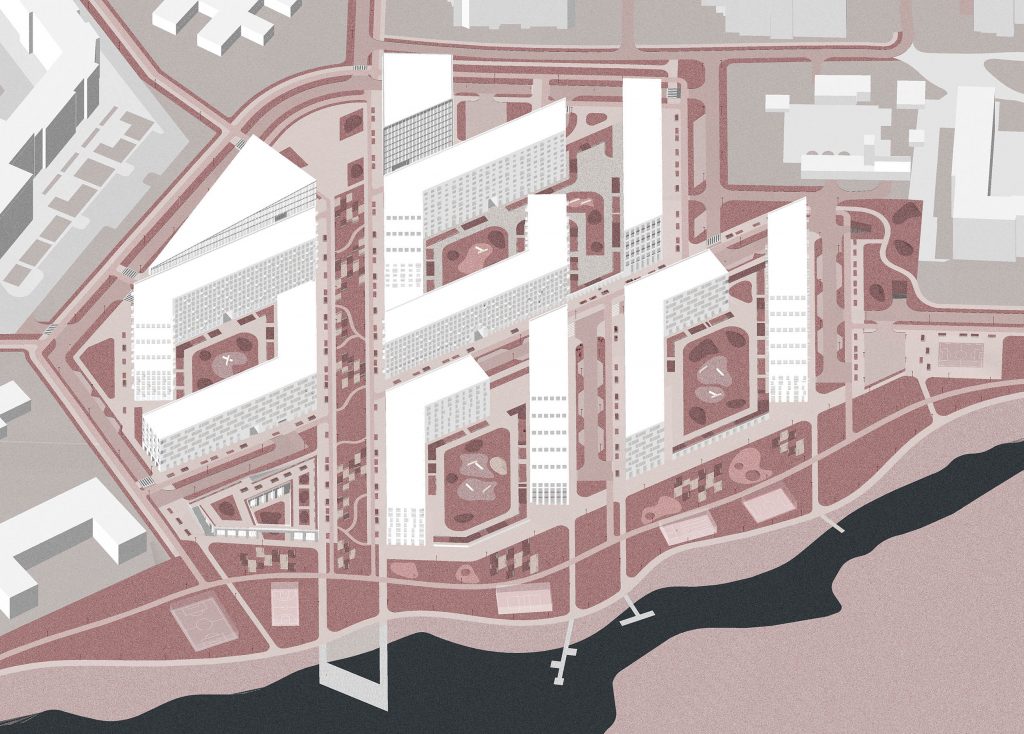Дизайн мав відповідати основним запитам: найефективніша сітка вулиць, розкриті до водного ресурсу двори, великий пішохідний простір, що з’єднує місто і набережну, та кращі інсоляційні показники.