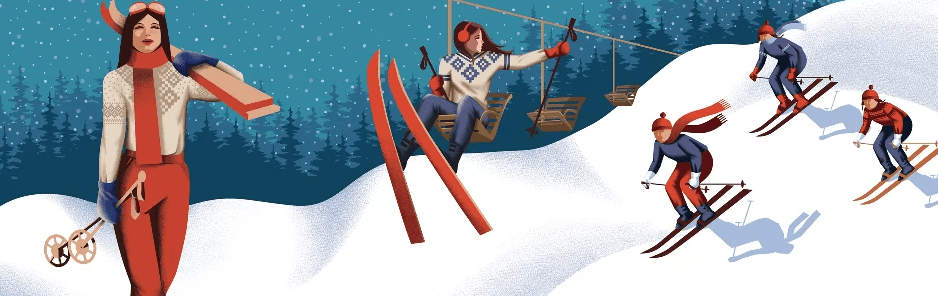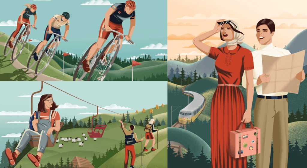 Патерн на основі фірмової ілюстрації. Сучасне прочитання ретро естетики класичних австрійських курортів минулого сторіччя.