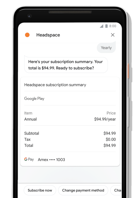 Тепер через голосовий помічник можна продавати та купувати цифрові товари. Це можуть бути разові покупки для нового рівня в грі або регулярні підписки. Функція Headspace тепер дозволяє вам підписатися на підписку прямо з помічника на вашому телефоні.