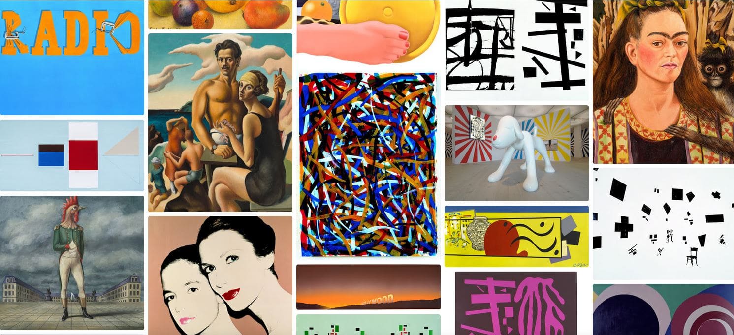 На платформі забрано більше сотні різних картин, зокрема твори Джузеппе Арчимбольдо, Йоганнеса Вермеера, Піта Мондріана, тощо.