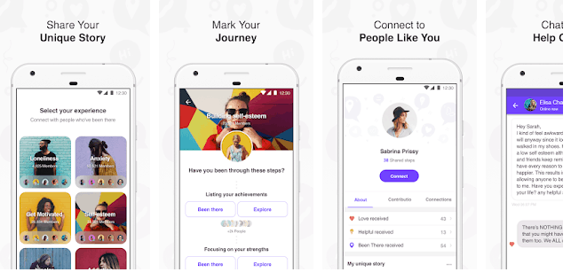 Соціальний додаток, де можна ділитись досвідом у групах підтримки людей із депресією, залежностями та іншим.