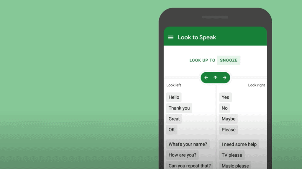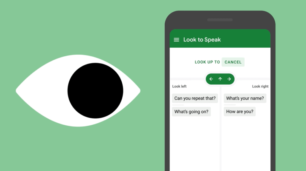 Для того, щоб Look to Speak запрацював, смартфон необхідно розташувати трохи нижче рівня очей: користувач має подивитися вгору, ліворуч або праворуч, щоб обрати зі списку фрази, які смартфон повторить вголос.