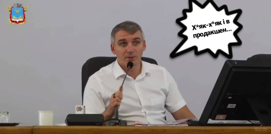 Вставши з крісла, мер пробурмотів собі під ніс лайливий мем, однак, мікрофон і трансляція встигли вловити його меседж.