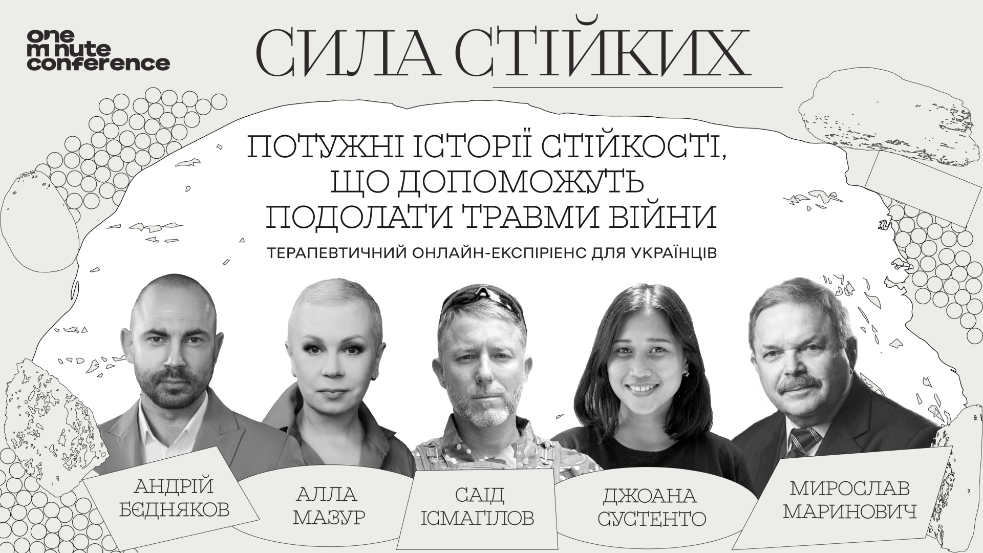 До соціального проєкту доєдналися телеведуча Алла Мазур, дисидент Мирослав Маринович, всесвітньо відома психологиня Едіт Егер, яка підлітком вижила у Аушвіц, та ще шестеро спікерів з України та світу. Серед міжнародних спікерів – кліматична активістка Джоана Сустенто, яка під час одного з найсильніших тайфунів в історії людства, втратила майже всю родину. І, вцілівши, присвятила своє життя боротьбі з компаніями-гігантами, що спричиняють зміни клімату, а ті, в свою чергу — подібні тайфуни.